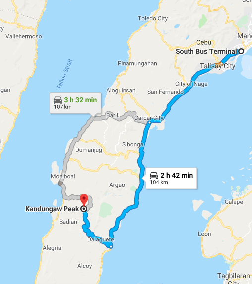 Fare from Cebu to Dalaguete – Php 120.00Fare from Highway Dalaguete to Mantalongon Market – Php 50.00Mantalongon Market to the jump off area of Kandungaw Peak – Php 50.00Kandungaw Peak Entrance Fee – Php 30.00Kandungaw Peak Camping Tent Space fee – Php 50.00Kandungaw Peak to Mantalungon Market – Php 50.00Mantalongon Market to Dalaguete National Highway – Php 50.00Dalaguete to Cebu City – Php 120.00Food and water for 2 days and 1 night – Php 450.00